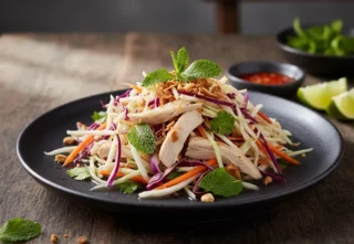 Gỏi Gà Bắp Cải – ein frischer vietnamesischer Hühner-Kohlsalat aus zartem Hühnerfleisch, knackigem Kohl, Karotten und Kräutern, verfeinert mit einem leichten, aromatischen Fischsaucen-Dressing.