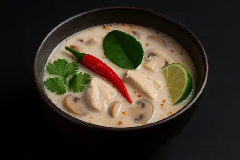 Erlebe den aromatischen Geschmack der berühmten Tom Kha Gai aus Thailand. Zartes Hühnerfleisch, cremige Kokosmilch, Zitronengras, Galgant, Champignons und ein Spritzer Limette sorgen für die perfekte Balance aus sauer, salzig und würzig. Einfach zu Hause zuzubereiten – ideal für gemütliche Mahlzeiten oder zum Beeindrucken von Gästen.